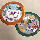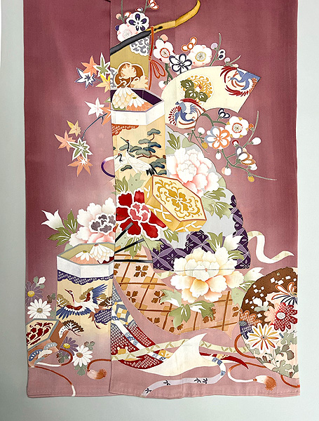 青みのある藤色の地には、山水の風景が地紋で物語っています。