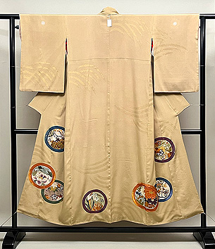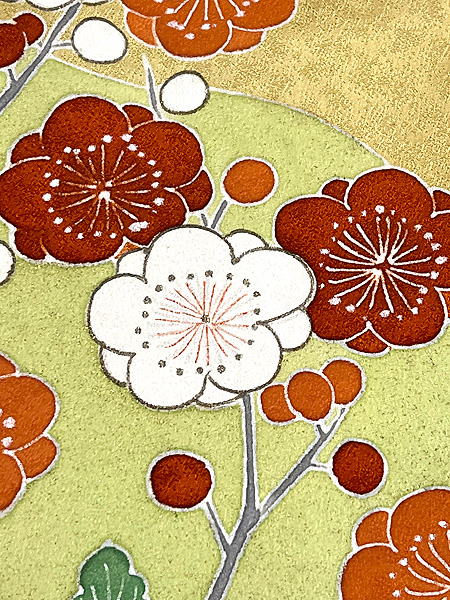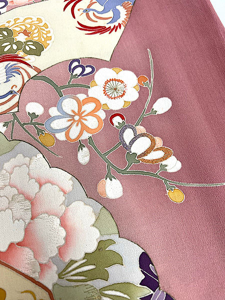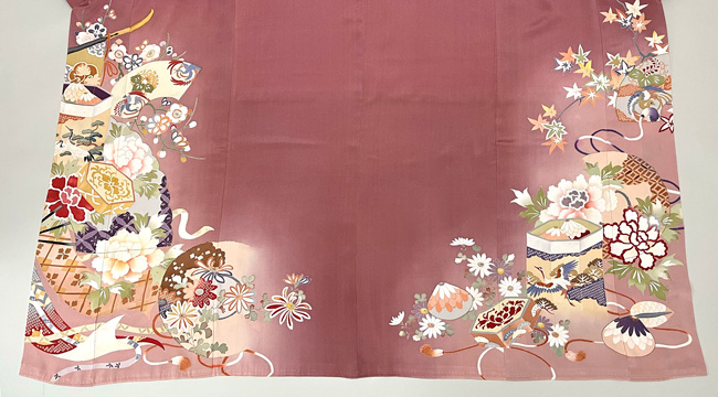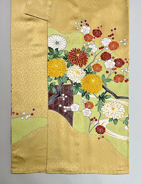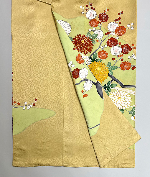 胸と背、そして裾とに荒波チドリが友禅で、丁寧に優しく描かれています。