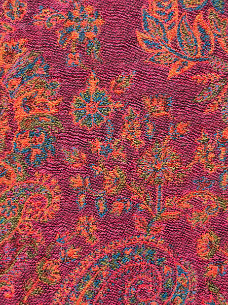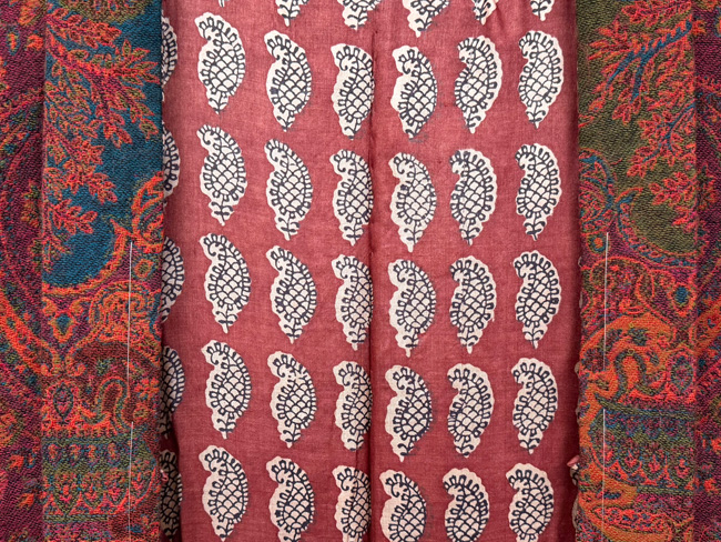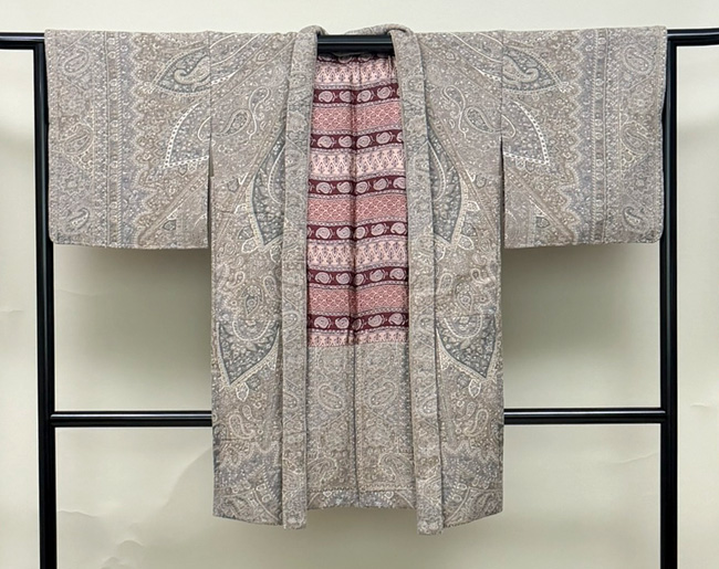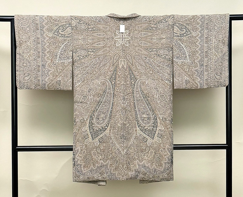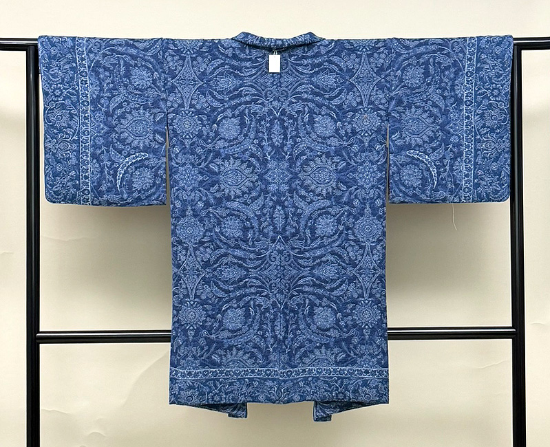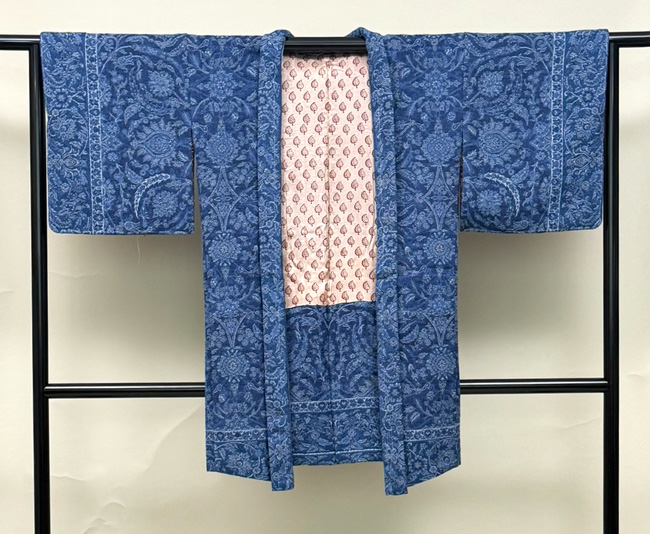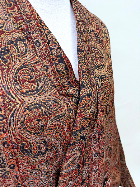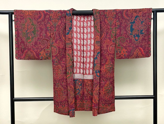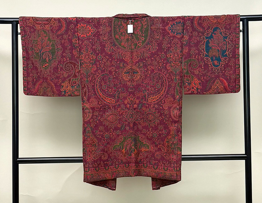 仕入れ旅行でインドから持ち帰ったジャマワ・カシミールのショールから羽織を仕立てました。