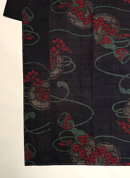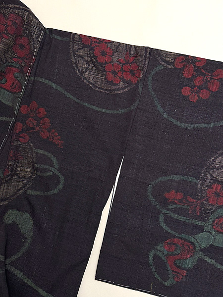 このお着物は昭和30年代の柳による再生作品ですが、モダンさと素朴さが微妙に同居しているような不思議な雰囲気を感じさせます。