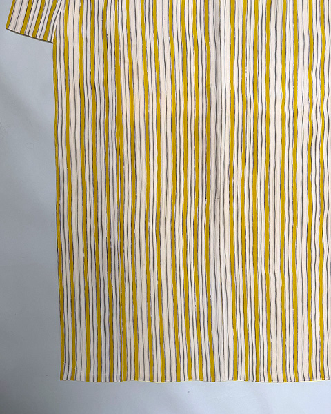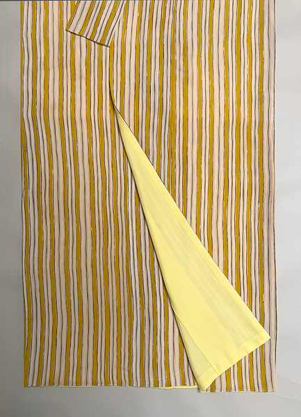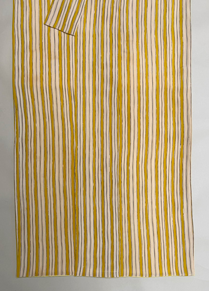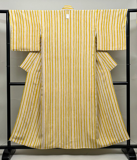 雪のように白い中に、黄色い縦縞が染めの優しい線で入っています。
