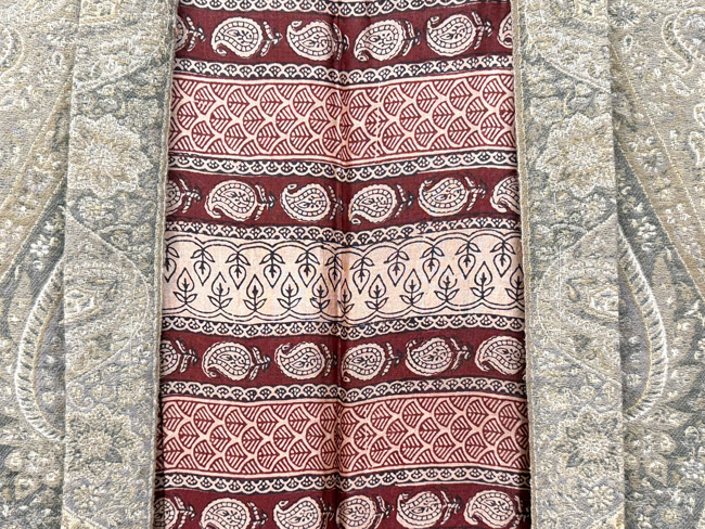 裏には、同じくインドのブロックプリントのサリーを使っています。