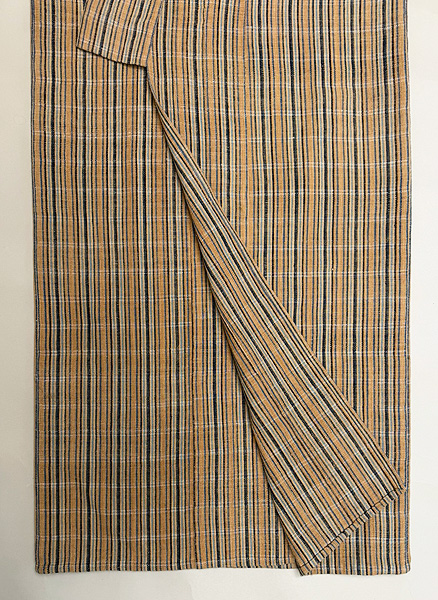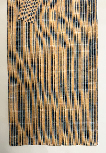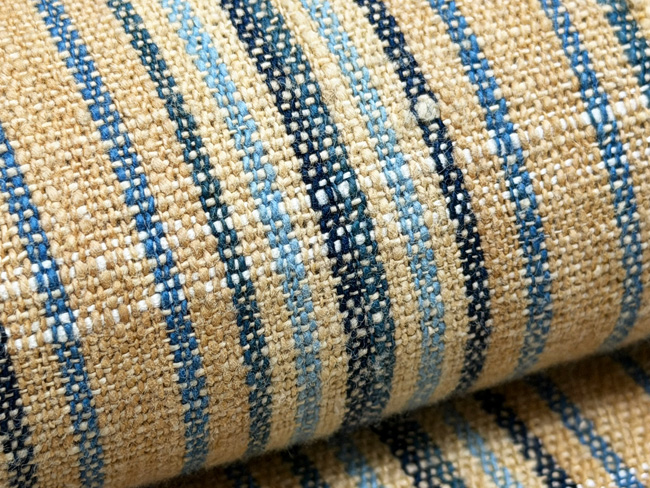 丹波布は明治末くらいまで盛んに織られていた縞織物。栗や山桃などから作られる植物染料で染める木綿糸(一部絹糸を入れる)をもちいて美しい縞模様を織り出していました。