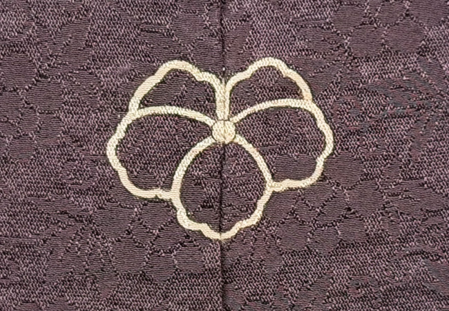 深紫色に控え目な金通しがアクセントになった縮緬地の羽織。