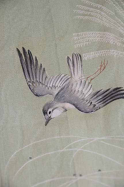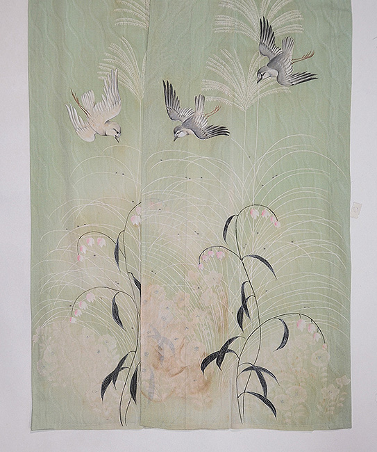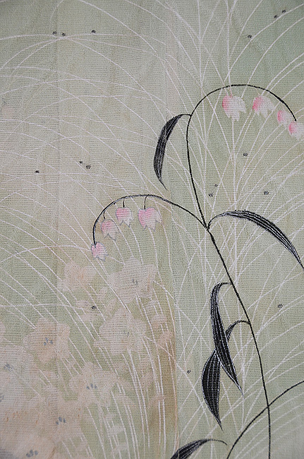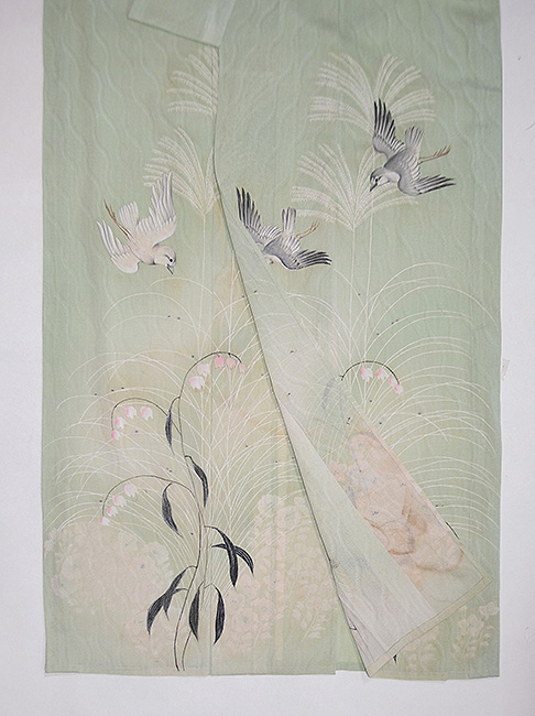 手描き友禅の、丁寧で達者な技巧が、さりげなく柔らかく情景を表現しています。