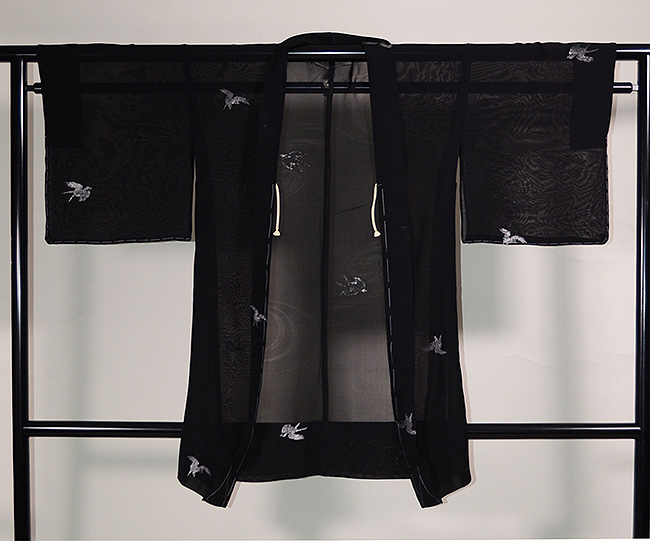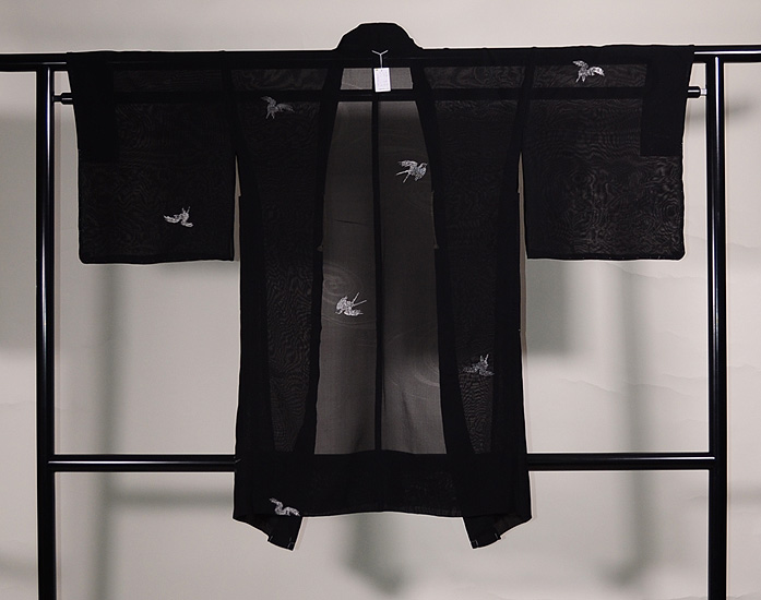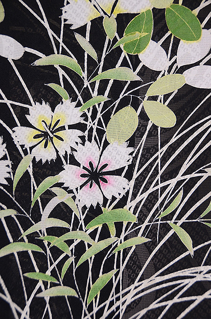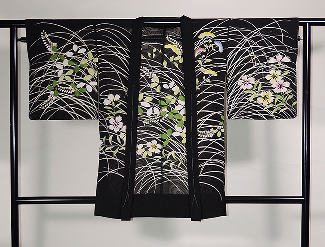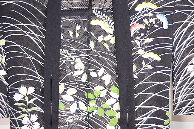 紋紗黒地に女郎花、撫子、萩の単衣羽織