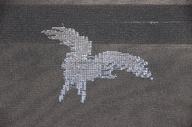 やさしいツバメが飛んでいます。大きな水門が紋紗として涼しげな透かしを見せています。