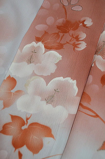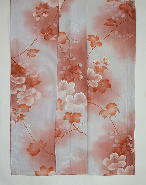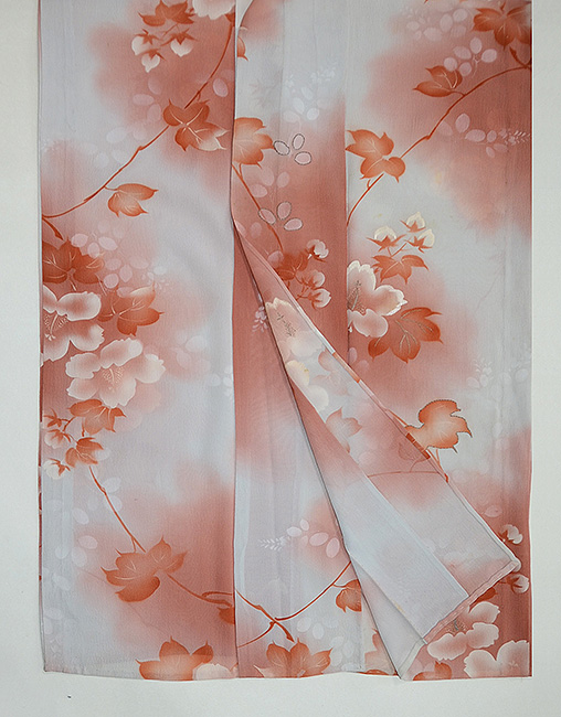 元は、男性の合着(お着物と襦袢の間に着る)でしたので赤も強すぎず、どこか曖昧なやさしい色をしているのも魅力になりました。