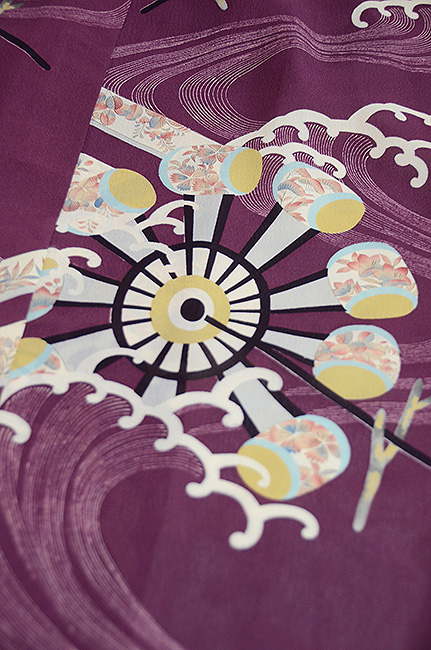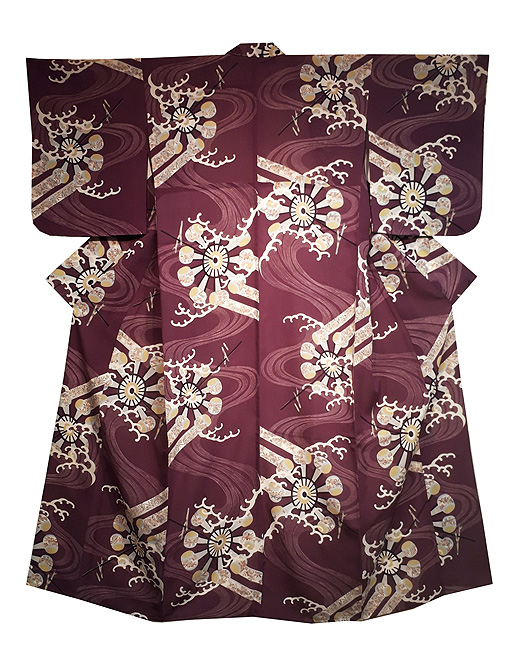 お仕立て直しで、サイズも伸び伸びとしていますが、地色のえんじが全体を締めてくれ、品性が偲ばれます。