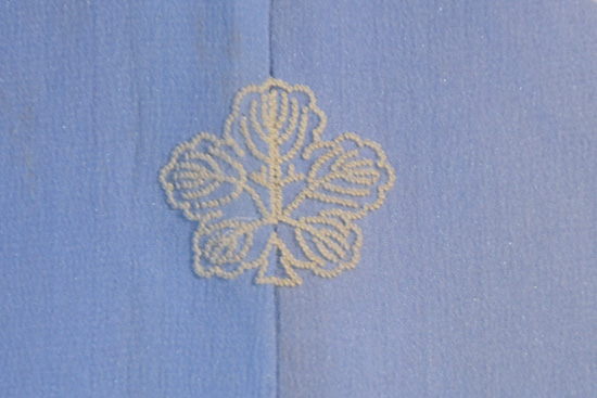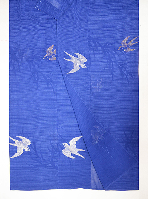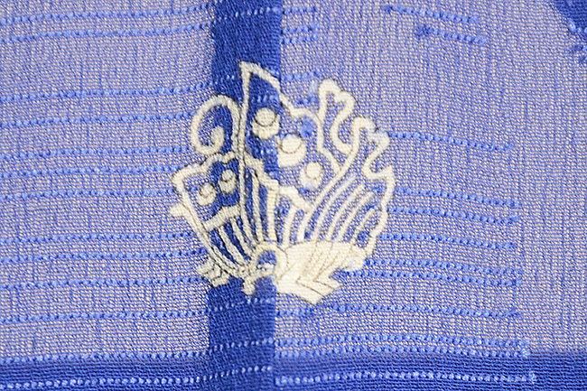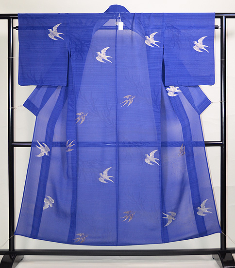 紺青に近い静かな色で決めているので、地紋の透かしと共に、とても涼やかなお着物に見えます。