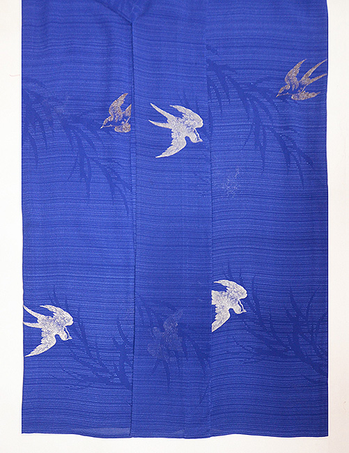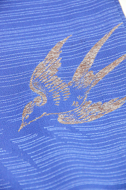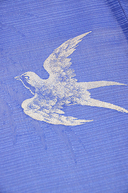 金銀と漆糸とで、飛翔するツバメが織り込まれています。