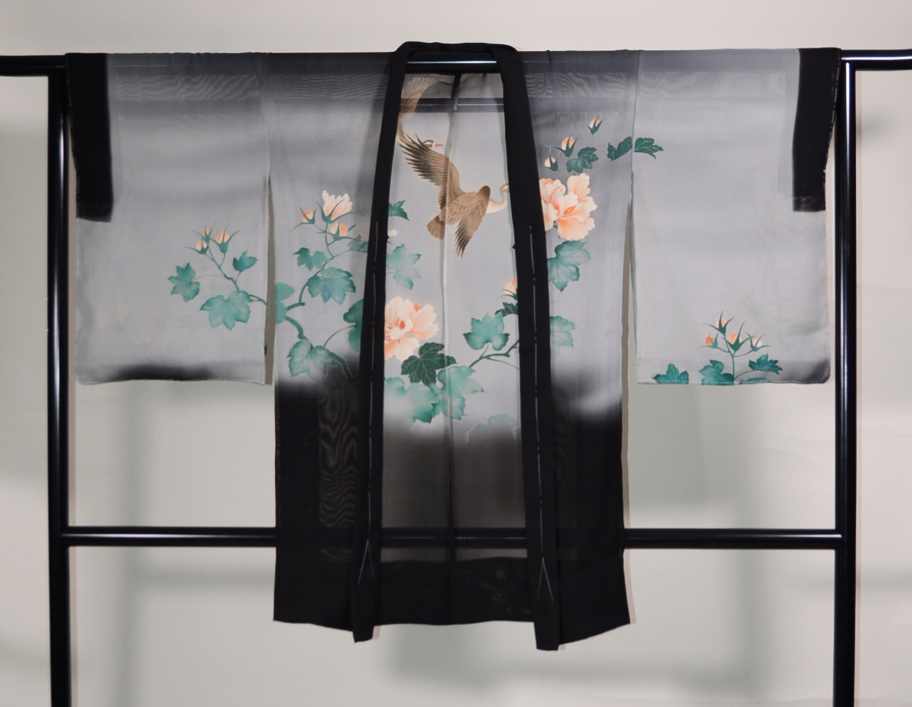 しっとりとした縮緬地に両面染めのおしゃれな羽織です。
