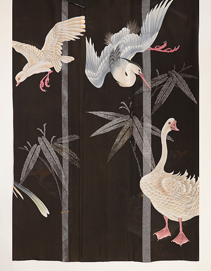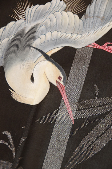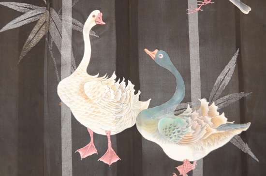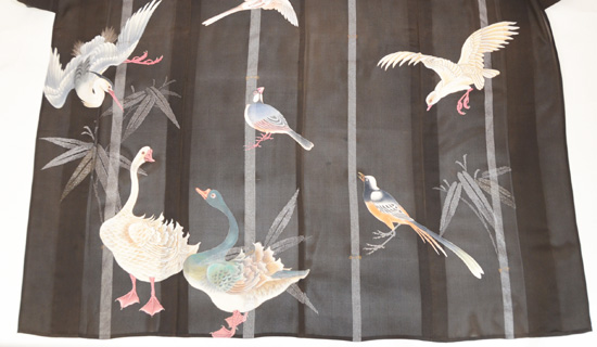 銀糸を織り込んで竹林が表現され、鳥たちの様子と相まって、まるで極楽浄土のよう。
