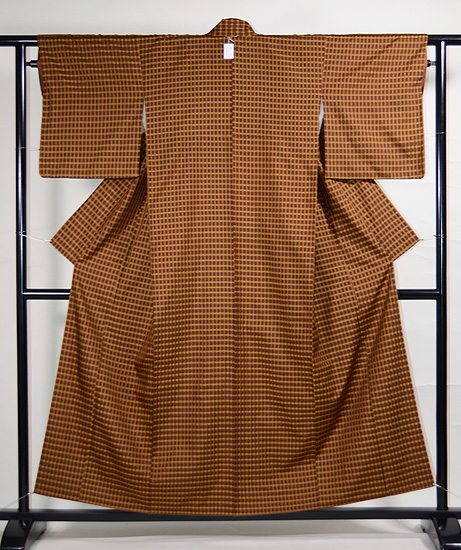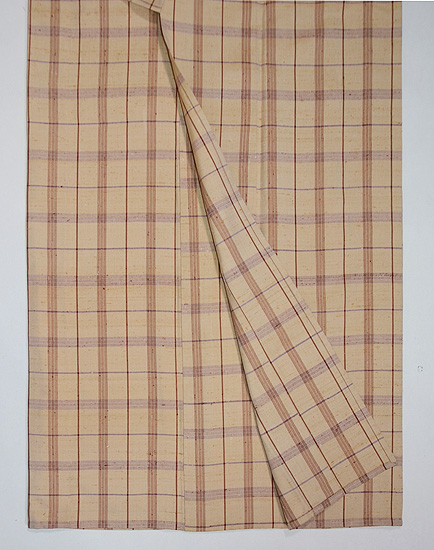 伊兵衛織 ベージュ格子柄単衣