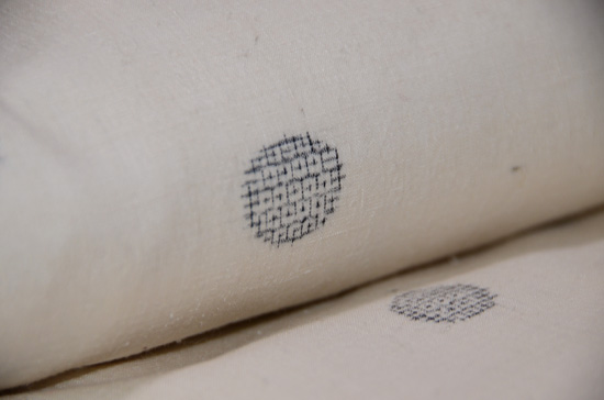 反物の表面に、小さな刺し子のようなポツポツがある代わり織の木綿地です。