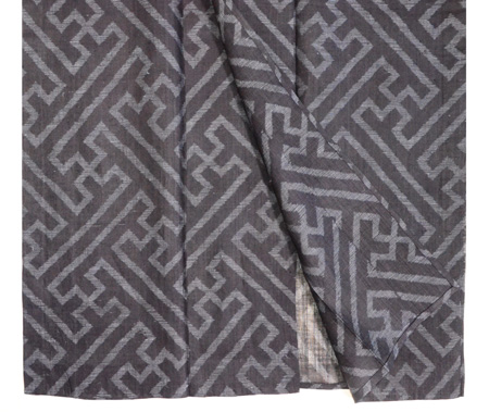 これは、随所に墨が入り、細やかに彫られた型紙から染められた、格調高い作品です。