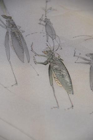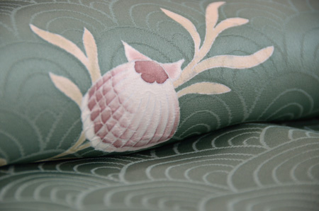 ジョーゼットに漆糸で撫子が織り込まれている非常におしゃれなお着物です。