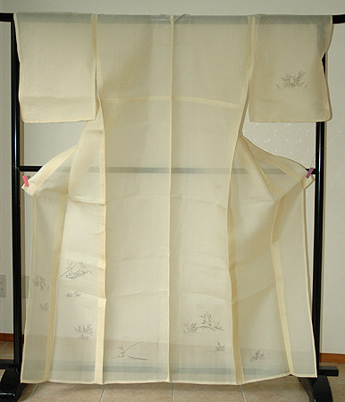 シャリ感のある生成の紗地は、どんな色の帯とも相性よく、涼しげな装いをおたのしみ頂けると思います。