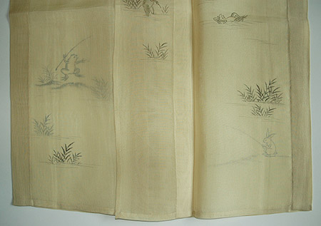 透け感のある地に鮎が泳ぐ紗の単衣です。