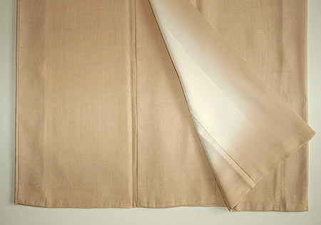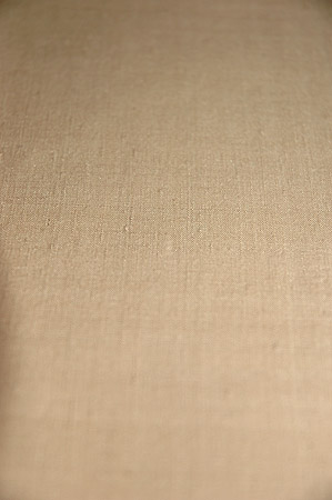 極端に太さの違うよこ糸を使って細かな間隔で、うねのように織られている生成色の紬です。
