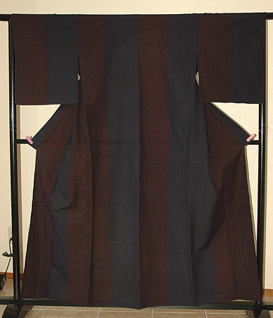 太い縞ですが、小柄な方にも無理なくお召いただけます。