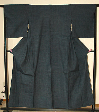 藍色と黒のみじん格子の本場結城紬の単衣です。