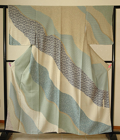 さまざまな江戸小紋が流れるように描かれている一越の合着です。