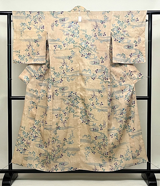 型友禅で本手摺りされた、露芝と萩模様の単衣小紋です。