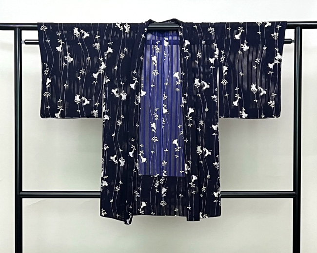 黒地虫柄の夏羽織