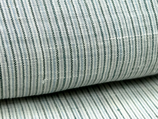 藍の濃淡3色で、無限色にも見えるデリケートな縞建を織り出しています。
