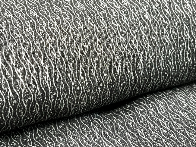 縦糸茶、緯の撚り糸グレーで、明るくしなやかな色を織り出しています。