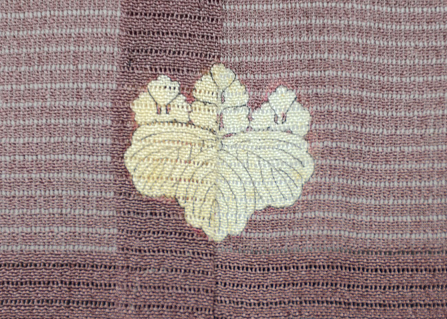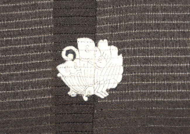 経年変化で、黒地も、たおやかな羊羹色になって、趣の深い着物になっています。