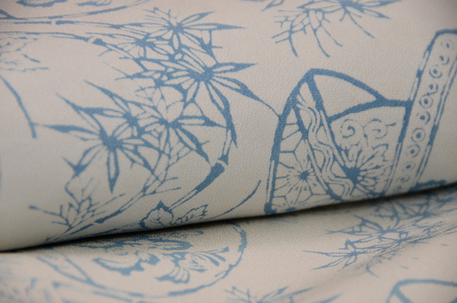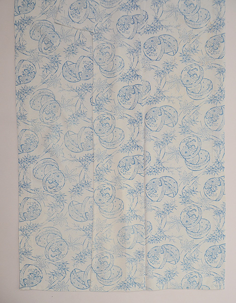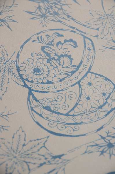 型染めなので型紙に制約があり、複雑なデザインの時は型紙を2枚使って糊置きをします。