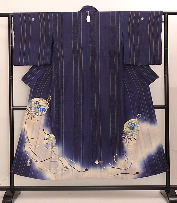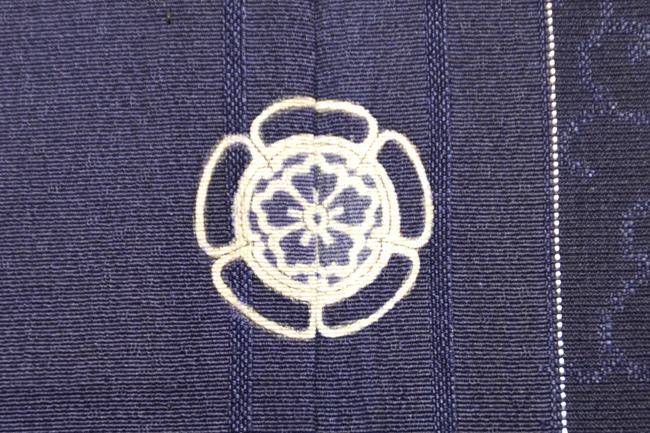 金銀の縞が織り込まれている昭和初期の作品で、3つ紋があります。