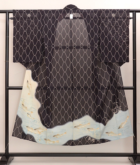大きな網代文に、大きな3つ紋は、大正昭和初期のお出かけ着です。