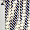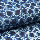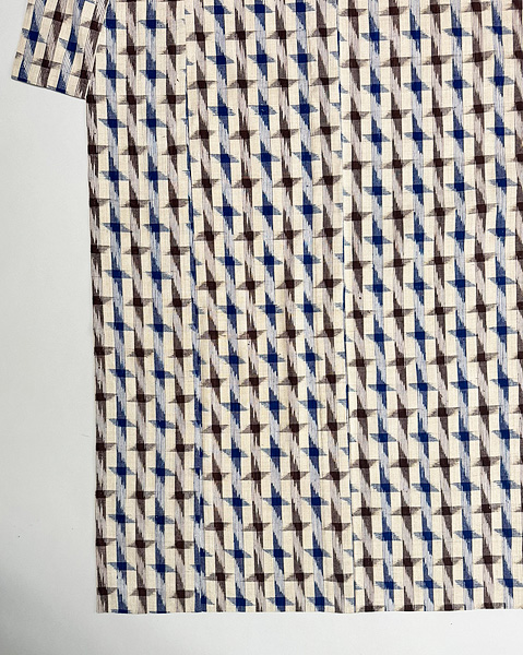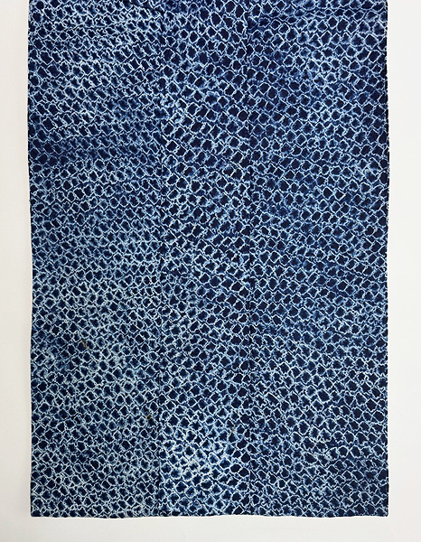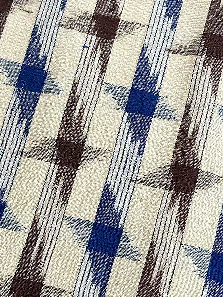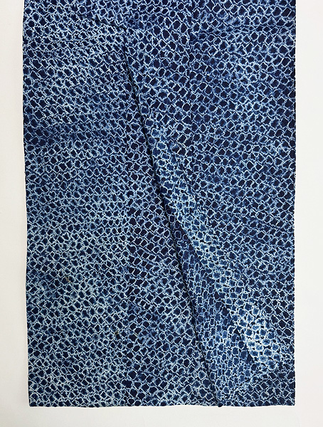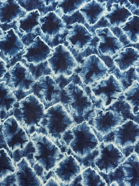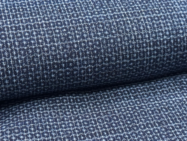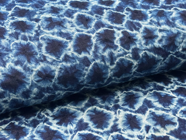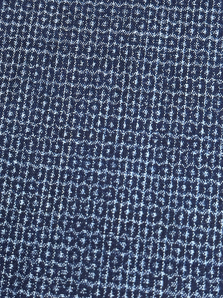 絣柄にも見える文様は、藍の濃淡によってユニークで温かみのある雰囲気に仕上がっています。