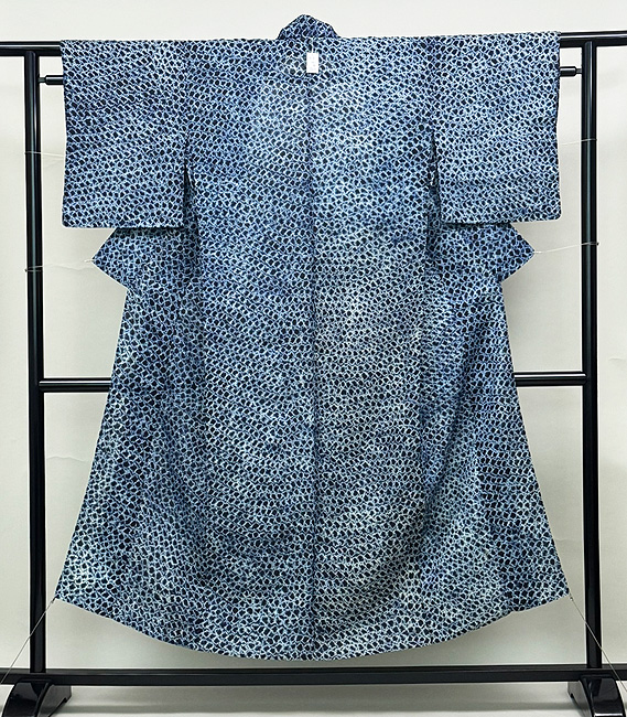 深い藍の中にかわいいドットが並んで大人かわいいきものになっています。