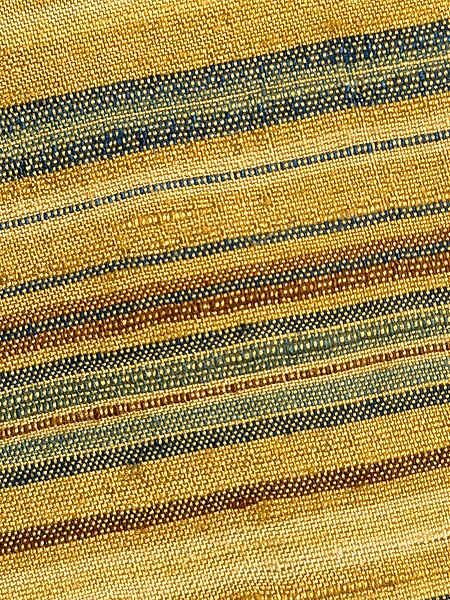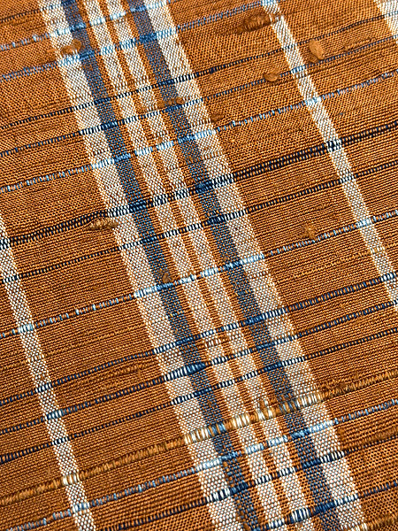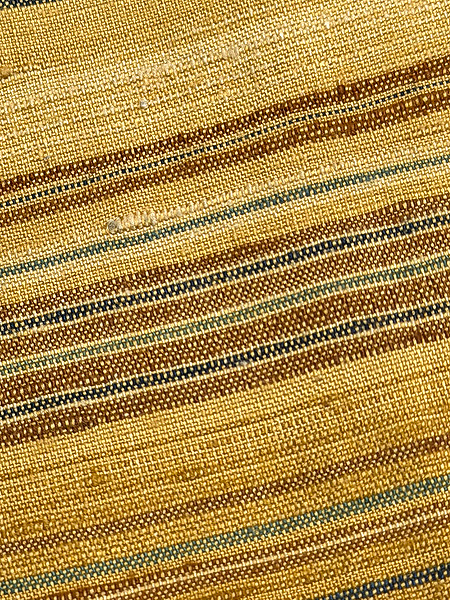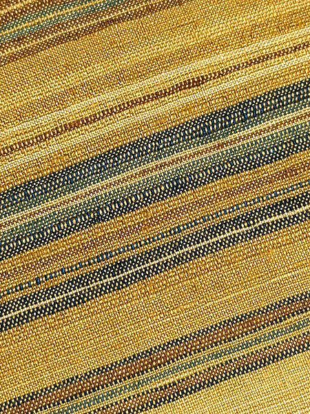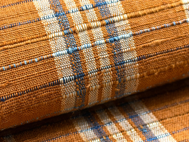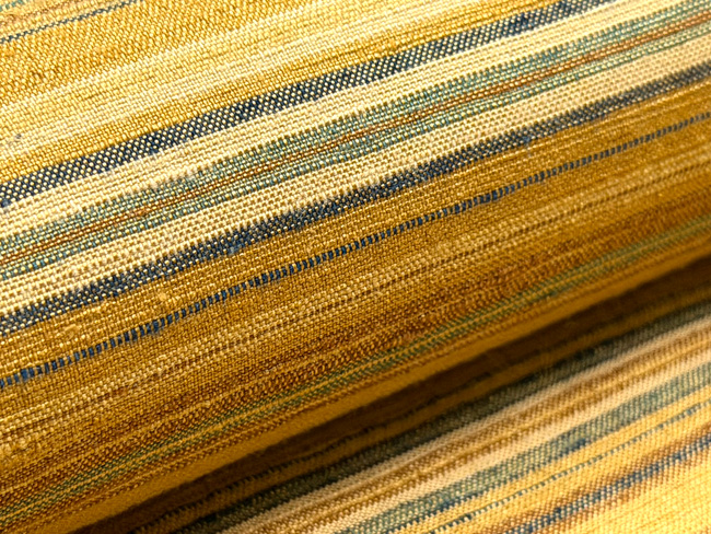 縦に色糸を入れて縞柄を構成し、緯糸に時に太い節糸を入れて、横の畝りを作っています。
