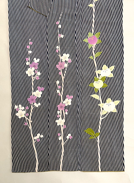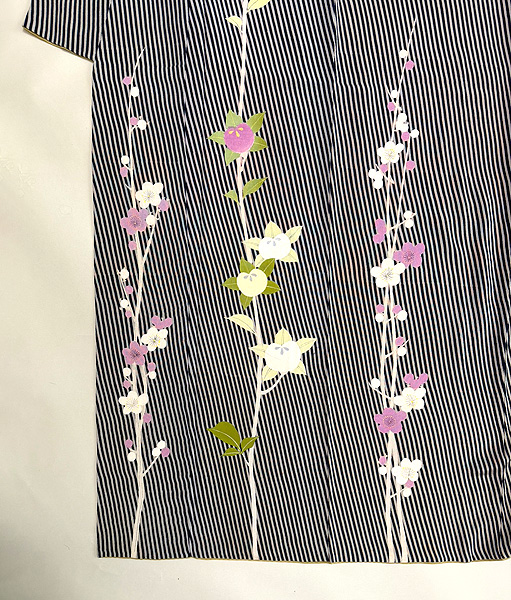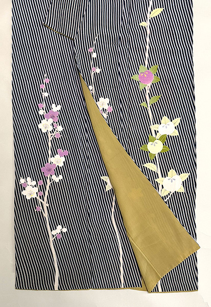 槍梅と橘が裾から肩まで突き抜けて、縁起の良い、元気が湧き出てくるような着物はいかがでしょうか。