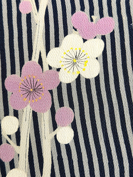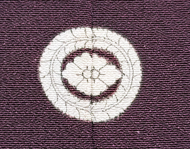静寂の空気を震わせて、4拍子が響きわたる、まさにその時を表現した、3つ紋付縮緬地です。