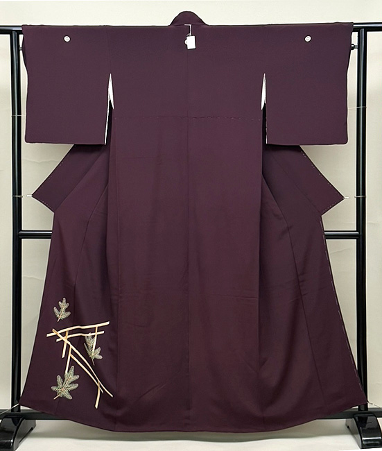 大きな雪輪が上身を覆い、裾に松竹を配した、肩裾模様。