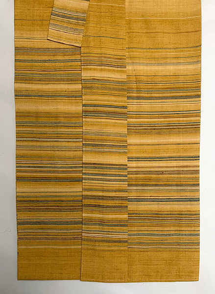 志村さんの36年作「芦刈」という作品があり、(「志村ふくみの紬織」より)縞建ては少し違いますが、全くおなじ色糸を使っての付下となっています。