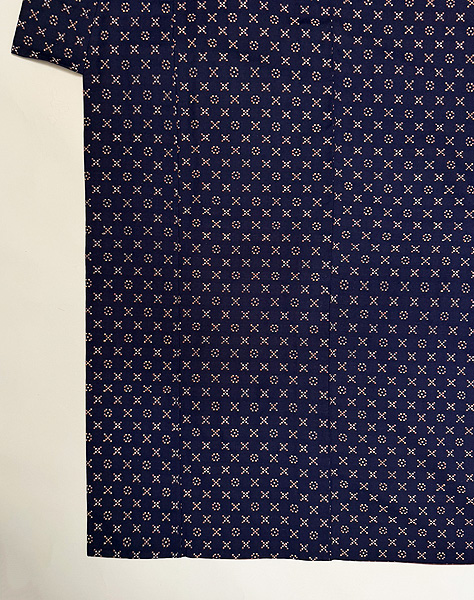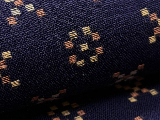 琉球藍に福木や蘇芳で染められた糸で花織の愛らしい柄が織出されています。