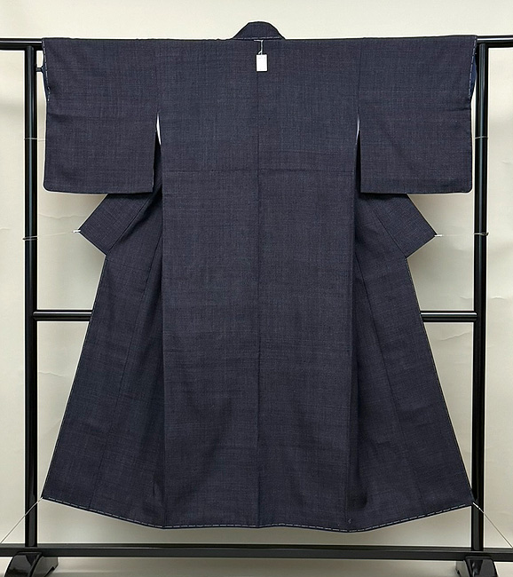 三ツ割沢瀉の五つ紋が存在感を放つ、明治期の江戸小紋です。