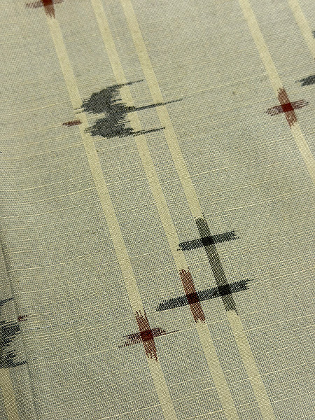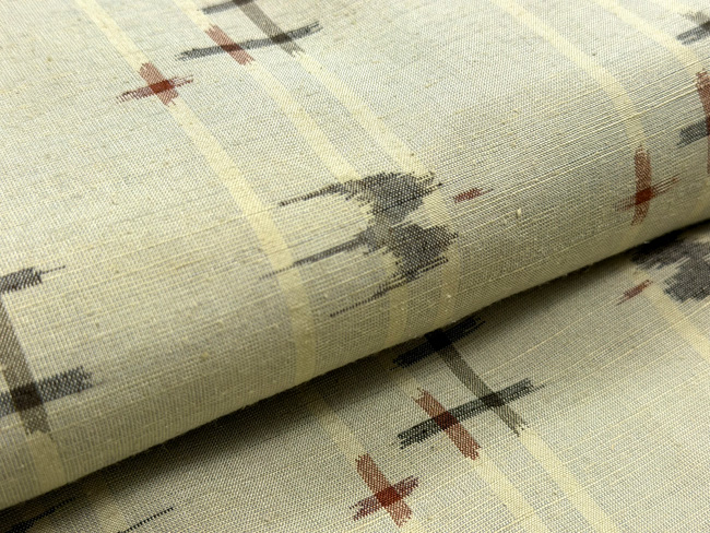 絣の一部に赤茶色の糸が使われてアクセントになっています。