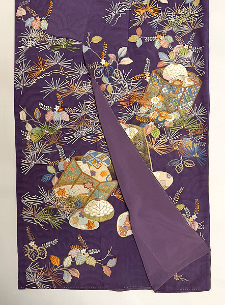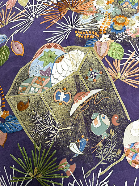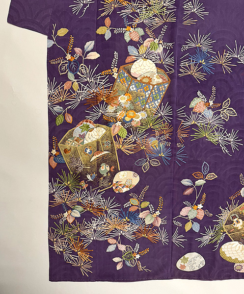柄のほとんどの部分に刺繍が施され、おめでたさを演出しています。