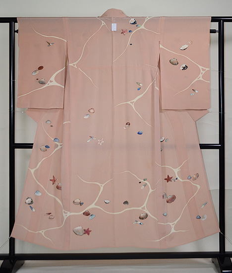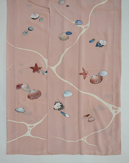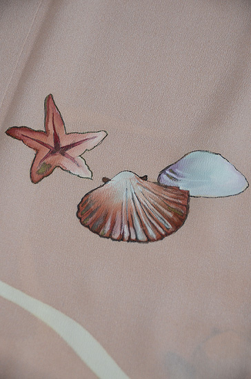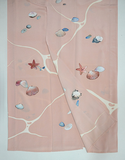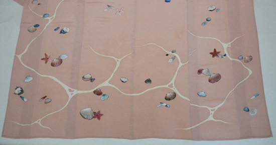 こんなに沢山の貝が、しかもピンクというのも珍しいお着物かもしれません。
