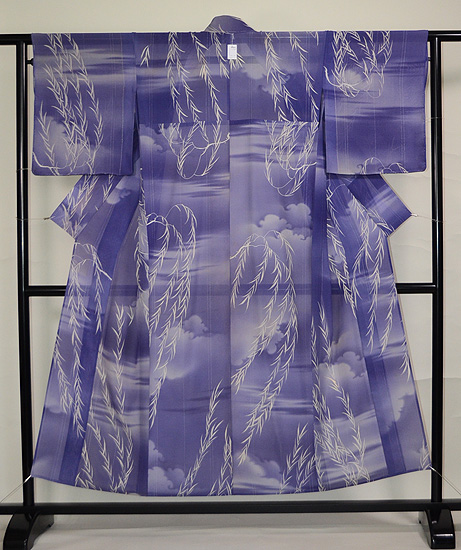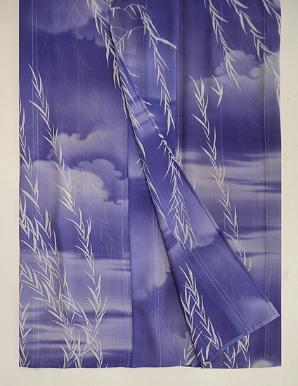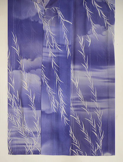 霞たなびく雲海の中、柳が風にそよ揺れて、いかにも涼しげなジョーゼットの初夏のお着物です。
