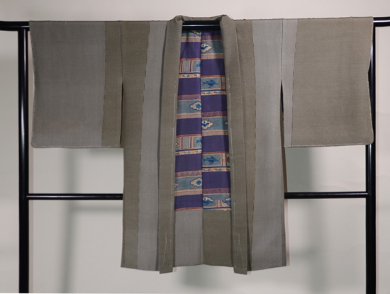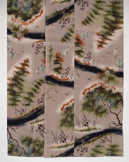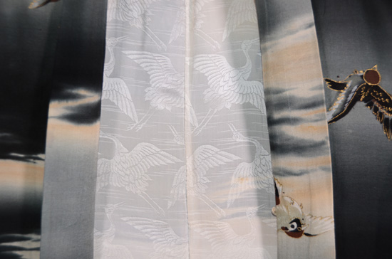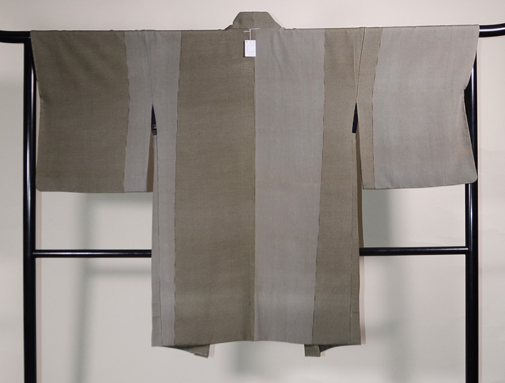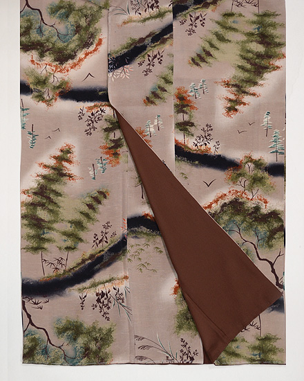 渋いヨモギ色が図柄と馴染んで、下に来るお着物を待っています。