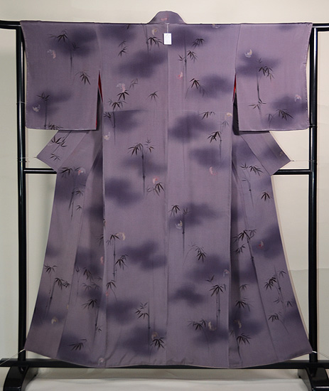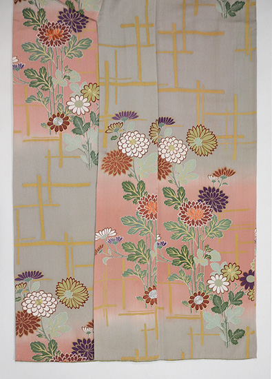 段替わりに色を違え、枝菊を配した、能装束を思わせる上質なデザインのお着物です。